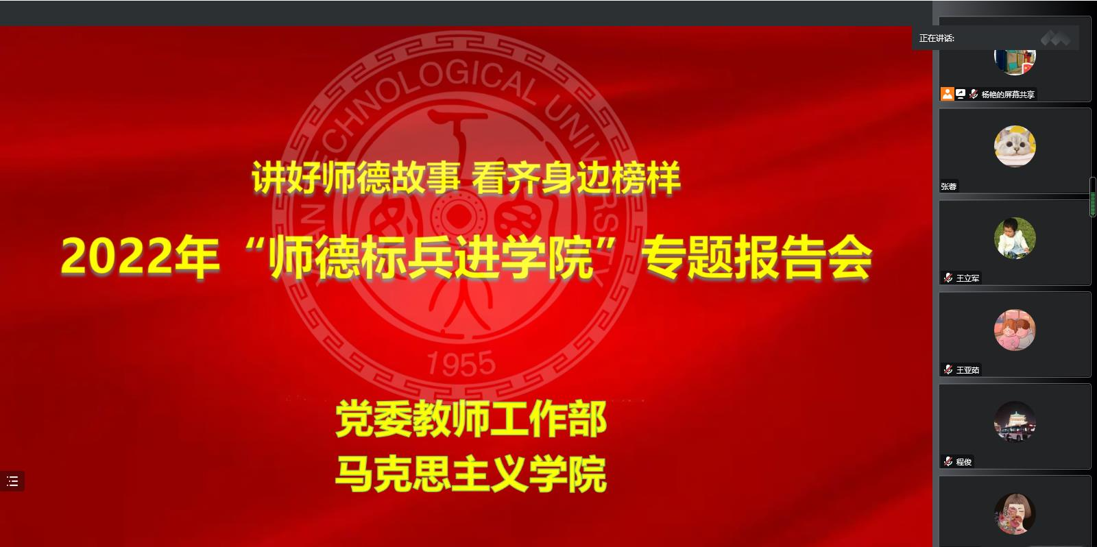 陈卫星从背景、经验分享、共勉三方面做题为“突出师德师风 做好教书育人工作”的报告。陈教授从教师内涵发展、师德师风的内涵、 “四有”好老师标准以及习近平总书记在全国教育大会、全国教育工作会议、给全国高校黄大年式教师团队代表重要回信中对教师提出的殷切希望等方面阐述了开展师德师风建设的背景。他以“学高为师,以德立教”、“用严谨之心打造一流专业”、“瞄准科技前沿开展科学研究”、“聚焦国家需求实现科技转化”、“用亲和之心架设教育之桥”、“用仁爱之心关爱员工”为内容分享自己在教学、科研、育人工作中的感悟。最后,陈教授用“四个坚持”与全院老师共勉,即坚持教育育人,立德树人;坚持学习,不断提升自我修养;坚持产学研结合的办学之路;坚持团队建设。
