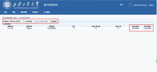 根据当前学期排考批次显示上传考试记录单任务列表,提供上传“考试记录单”、“补考记录单”等功能;