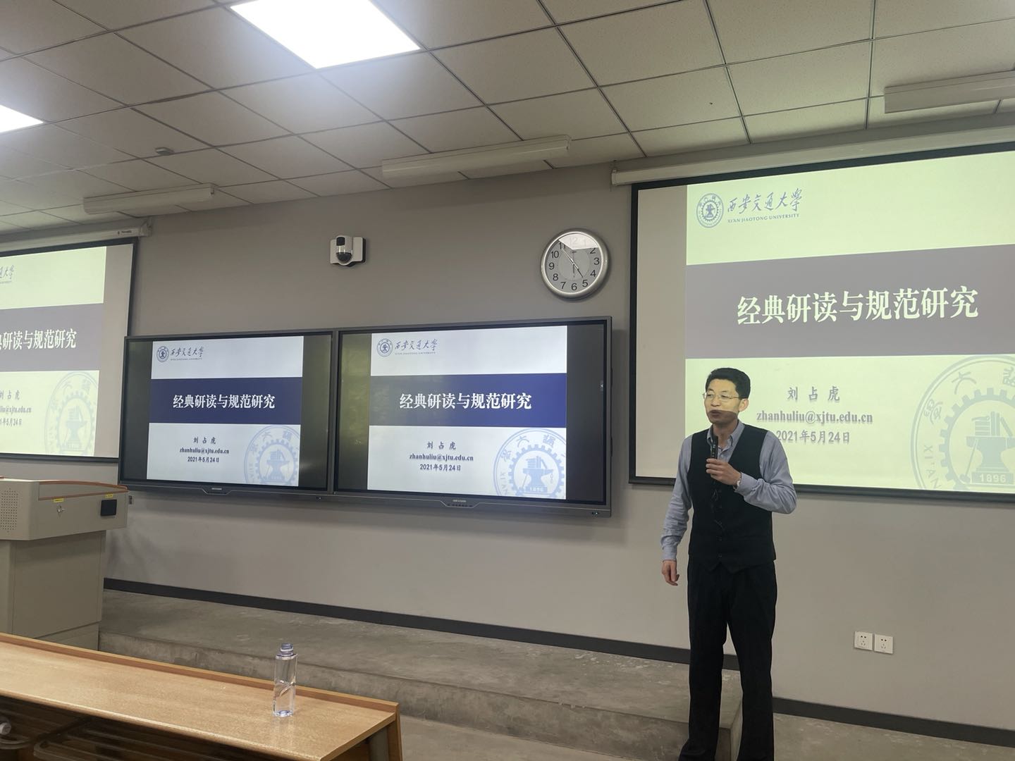 5月24日下午,公司邀请了西安交通大学beet365副教授、博士生导师刘占虎来公司,为公司师生作了题为“经典研读与规范研究”的学术报告。