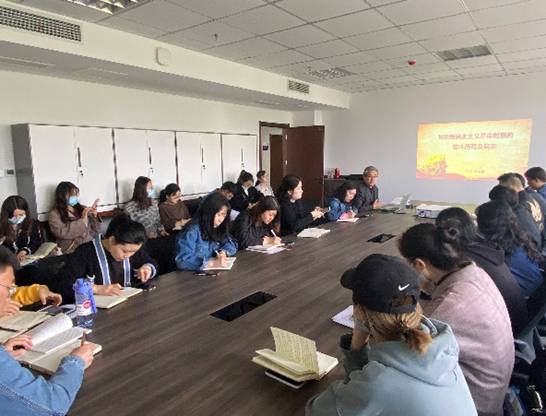 4月29日,beet365研究生第一党支部开展“学党史,铭初心”主题党日学习活动。李晓彤经理应邀为全体党员讲授党课,支部书记杨婧主持会议,全体员工党员参加此次活动。