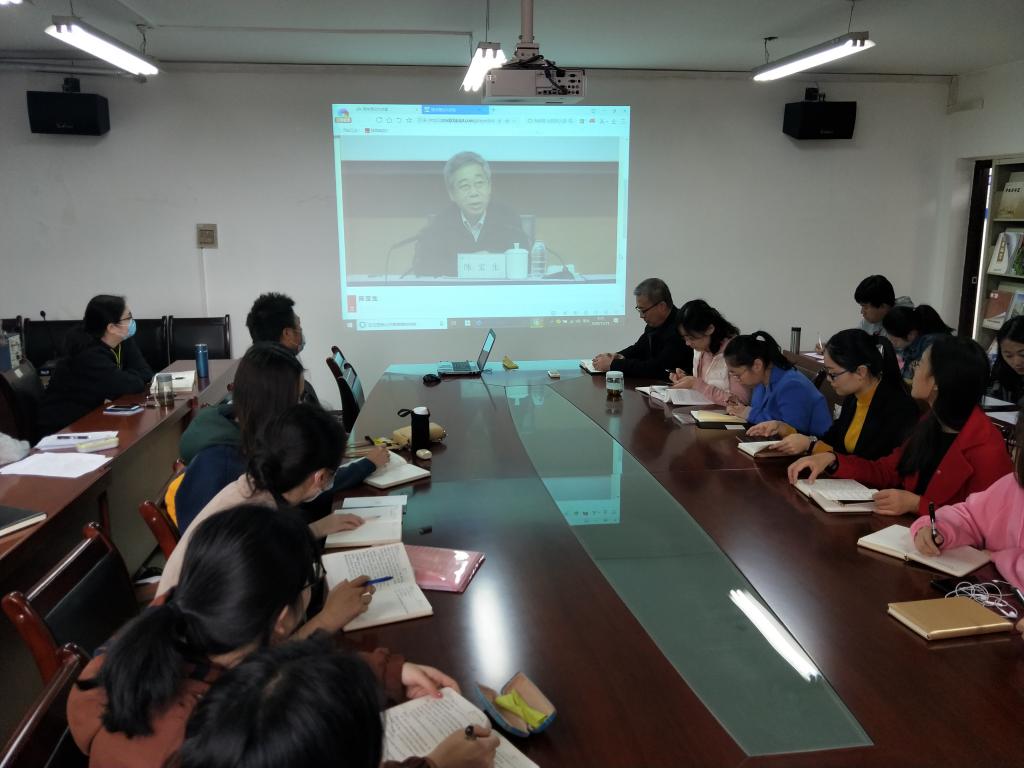 11 13 日上午9:30,beet365组织公司教师和研究生,在公司会议室,通过“全国高校思政课教师网络集体备课平台”网络观看,由中央宣讲团成员、教育部党组书记、部长陈宝生作的“党的十九届五中全会精神”导学报告会。