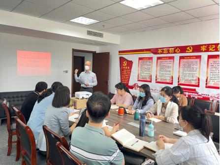 为了进一步扎实推进学习贯彻习近平新时代中国特色社会主义思想主题教育,2023年6月7日上午,马克思主义公司党委书记杨灏在思想道德修养与法治教研部党支部做了一场题为“把自律作为新时代师德师风建设的一个着力点”的专题党课。杨灏书记指出,学习贯彻习近平新时代中国特色社会主义思想要在以学铸魂、以学增智、以学正风、以学促干方面取得实实在在的成效,就要把师德师风建设摆在更重要位置,切实增强广大教师为党育人、为国育才的责任感、使命感和紧迫感。杨灏强调,师德是立业之基、从教之要,师德师风是评价教师队伍的第一标准,直接影响教师队伍整体素质。他从他律与自律的辩证关系出发,指出全体教师应进一步加强对教师职业特性的充分认识,自觉做到以德立身、以德立学、以德施教和相互成就。