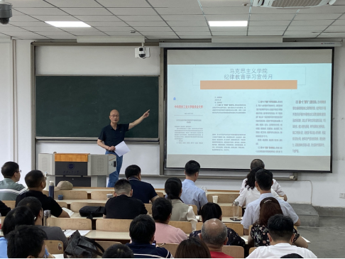 杨灏首先传达了《关于在全校开展纪律教育学习宣传月活动的通知》。活动以“学党章、悟思想、强党性、善作为”为主题,结合正在开展的学习贯彻习近平新时代中国特色社会主义思想主题教育,深入贯彻落实习近平总书记关于加强纪律建设的重要论述,进一步提高政治判断力、政治领悟力、政治执行力,深刻领悟“两个确立”的决定性意义,增强“四个意识”,坚定“四个自信”,做到“两个维护”,把加强纪律建设作为全面从严治党的治本之策,把纪律教育摆在更加突出的位置,强化经常性纪律教育,深入开展党性教育、纪律教育、警示教育和廉洁文化教育,加快推进清廉校园建设步伐。纪律教育学习宣传月集中在6月份进行。
