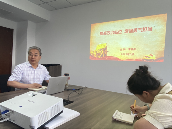 6月15日下午,beet365研究生第一党支部邀请李晓彤经理为全体党员讲授题为“提高政治站位,增强勇气担当”的专题党课。支部书记杨婧主持会议,全体员工党员参加此次活动。