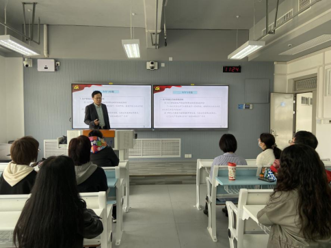 邹志伟向全体党员做《在延安文艺座谈会上的讲话》为主题的读书分享报告。邹志伟从缘由与发起、内容与精髓、影响与启示三个板块向与会党员深入解