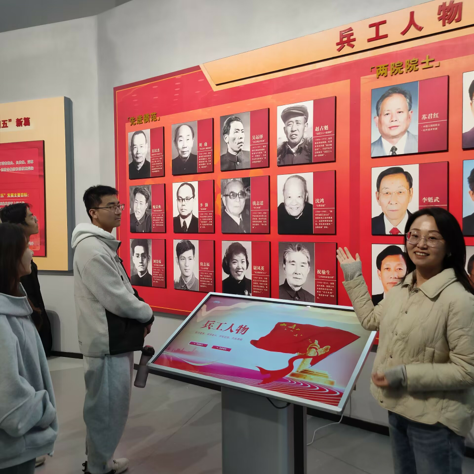 在西安兵器展览馆,同学们了解了中国兵器工业从无到有、从小到大、从弱到强的辉煌奋斗历程。从创建最早的江西兴国县官田兵工厂到黄崖洞兵工厂,再到现代化兵工厂;从手工炮制的简易兵器到现如今的高精尖现代化武器装备;人民兵工事业从革命时期的保国强军逐步成长为新时代强国富民,员工们感受到了一代代兵工人为了祖国兵工事业的发展所进行的艰苦卓绝的伟大实践,感受到了高科技战争条件下我国兵器工业服务国家国防建设、服务国家经济发展所取得的重大成就。在兵器工业科技产业基地,同学们了解了军民融合发展模式,了解了兵器工业在“央地”“校企”深度合作中彰显 “国之重器”培养中的担当和使命。