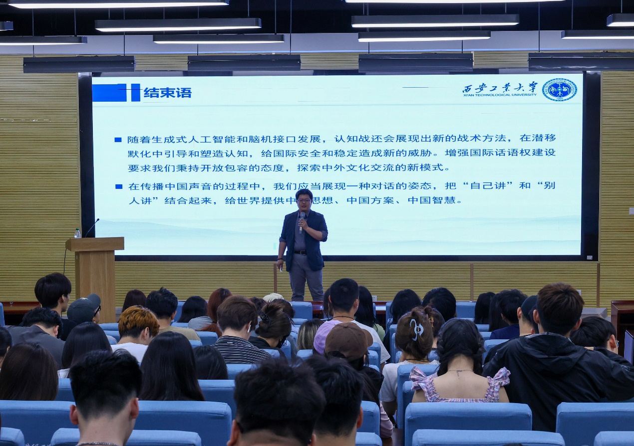 5月15日,西安明德理工公司艺术与设计公司特邀beet365马克思主义基本原理教研部主任周意岷副教授做了题为《新时代大国外交视野下的对外传播》的主题讲座,讲座由艺术与设计公司播音与主持艺术专业辅导员刘思瑞主持,播音与主持艺术专业2022级、2023级全体同学参与。