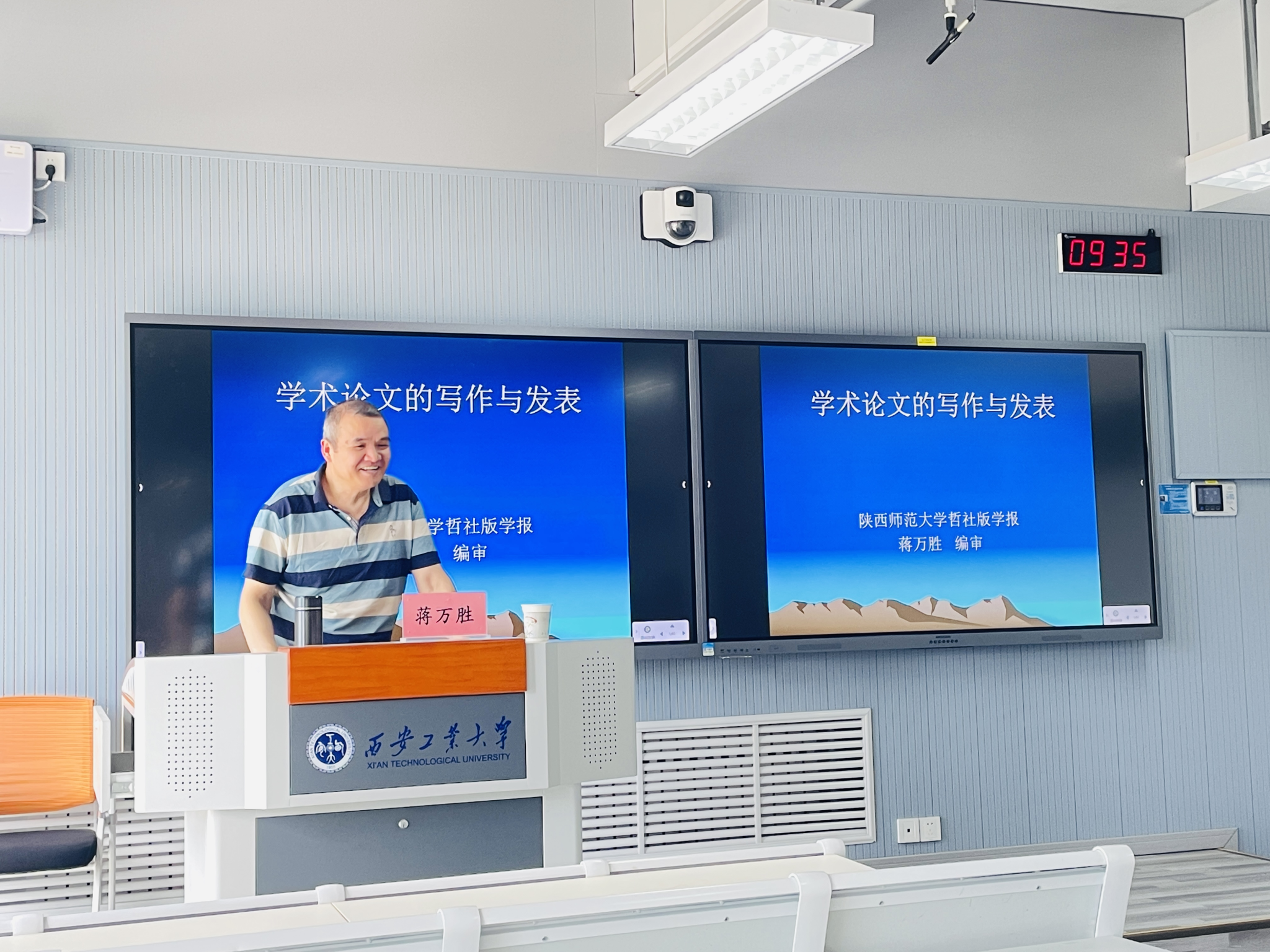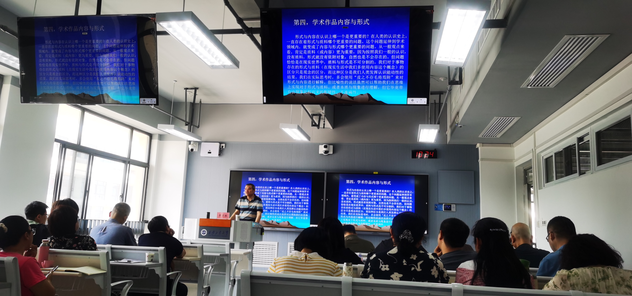 蒋万胜编审围绕“什么是学术精品、如何创作学术精品”这一主题,分别从学术精品的界定,普遍存在的认识误区、论文选题、投稿与发表等几个方面与参会师生进行了深入交流。报告过程中,蒋万胜编审以大量的论文创作实例引入,深入讲解了学术论文写作过程中语言文字的使用和逻辑训练的重要性,并以康德的《纯粹理性批判》为例,深度回答了哲学社会科学研究中如何以语言文字使用提高学术思维水平。最后,蒋万胜编审指出创造出学术精品需要实现思维方式的突破;学术研究活动需要从日常思维转变为学术思维;学术研究要求论证更多地以推理方式进行,并针对学术思维的理想样态与积极培育提出了自己的主张。鼓励大家论文写作中学习郑板桥“删繁就简三秋树,领异标新二月花”。