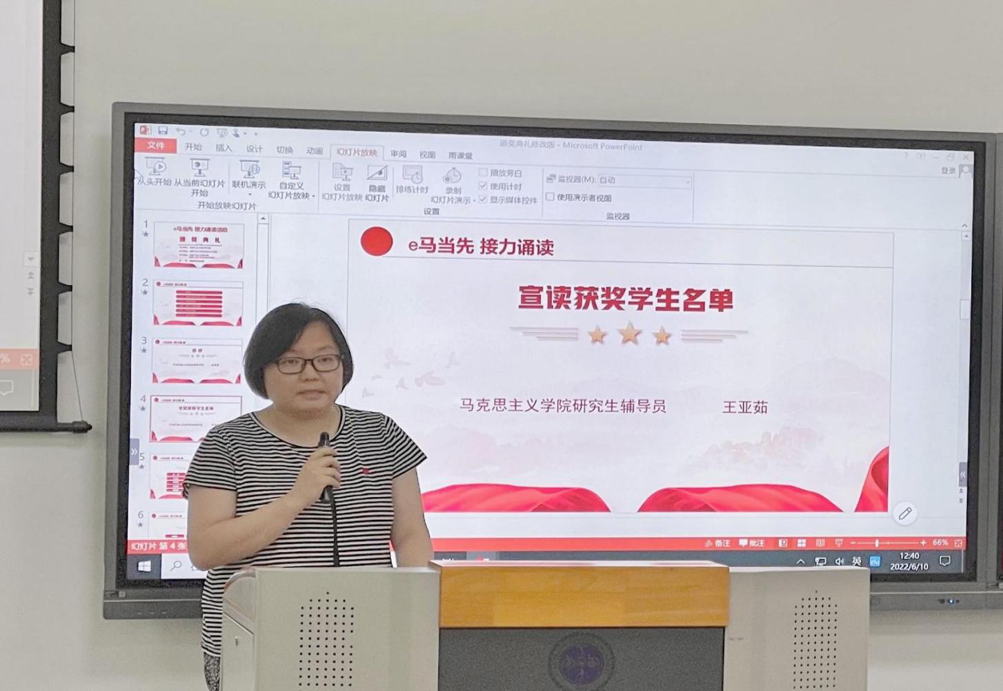 颁奖仪式于6月10日中午在教2-106成功举办,党委研究生工作部副部长孟静、马克思主义公司党委副书记李明芳、beet365研究生辅导员王亚茹出席本次颁奖仪式。beet365研究生沈华主持。