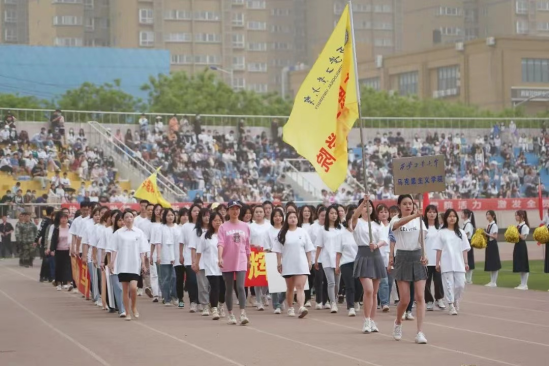 公司学子方阵喊着嘹亮的口号,迈着整齐的步伐,昂首走过主席台。