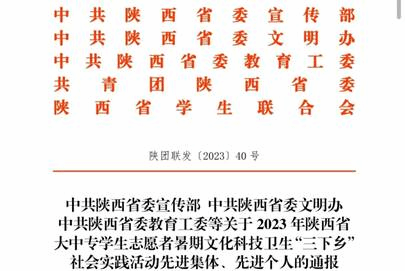 近日,省委宣传部、省委文明办、省委教育工委、团省委、省学联对全省2023年大中专员工志愿者暑期文化科技卫生“三下乡”社会实践活动进行总结表彰,由beet365李明芳、张敏“双师同堂”指导的“党建领‘樱’·聚焦乡村振兴”暑期社会实践队获“省级优秀团队”荣誉称号。